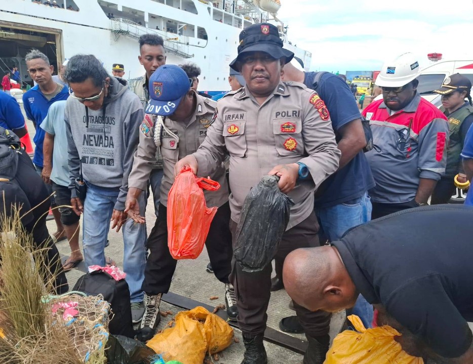 SENTANINEWS.NET – Jayapura Kota – Polsek Kawasan Pelabuhan Laut (KPL) Jayapura berhasil menggagalkan upaya masuknya minuman keras lokal (milo) ilegal jenis sopi asal Ambon saat kegiatan debarkasi kapal KM Ciremai di Dermaga I Pelabuhan Laut Jayapura, kota jayapura, Papua. Sabtu 27 September 2025.