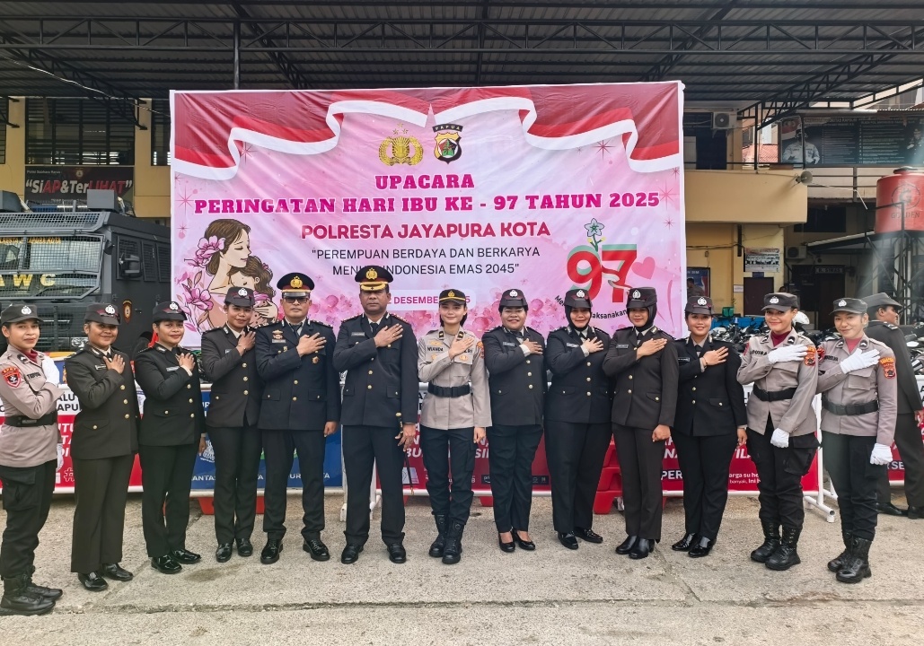 SENTANINEWS.NET – Jayapura Kota – Polresta Jayapura Kota menggelar upacara peringatan Hari Ibu ke-97 Tahun 2025, yang digelar di lapangan apel Mapolresta Jayapura Kota, Papua, Senin pagi, 22 Desember 2025.