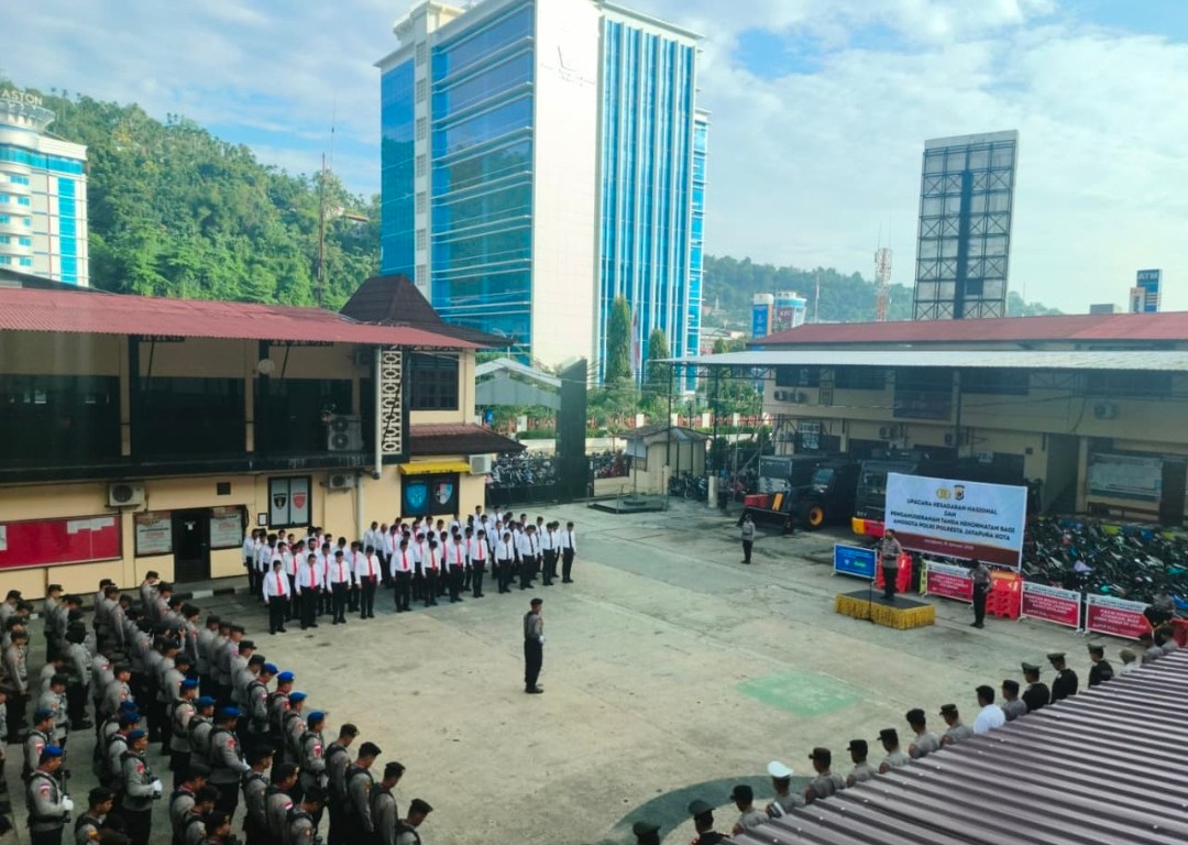 Kapolresta Jayapura Kota Kombes Pol Fredrickus W. A. Maclarimboen, S.I.K., M.H., CPHR bertindak selaku Inspektur Upacara dan diikuti oleh Pejabat Utama (PJU), para Kapolsek jajaran, perwira, bintara, serta ASN Polresta Jayapura Kota.