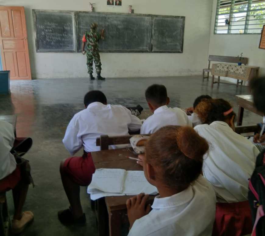 Peduli Pendidikan, Babinsa Numfor Bantu Proses Belajar Mengajar di Sekolah