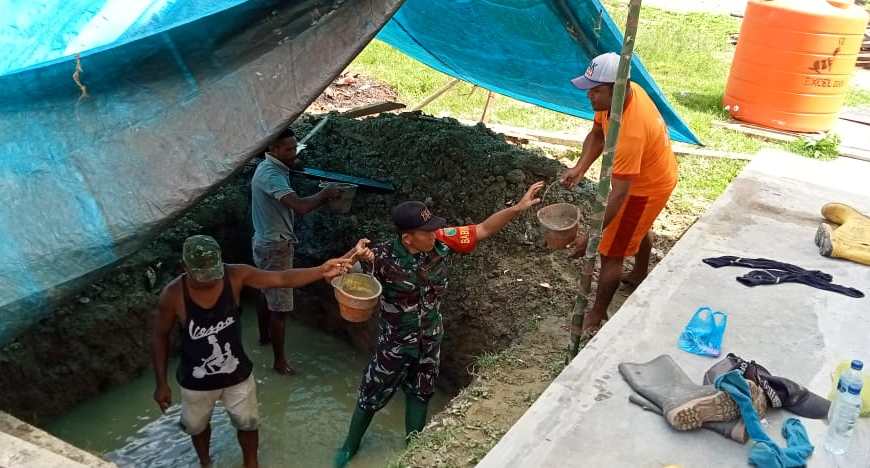 Jalin Kerja Sama, Babinsa Supiori Selatan Bantu Warga Dalam Pembangunan Pagar Gereja