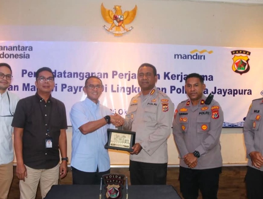 SENTANINEWS.NET – Jayapura Kota – Polresta Jayapura Kota teken kerja sama dengan Bank Mandiri berupa layanan Mandiri payroll yang dilaksanakan di Aula Mapolresta Jayapura Kota, Papua, Sabtu 25 Oktober 2025. Penandatanganan perjanjian kerjasama dilakukan oleh Kapolresta Jayapura Kota Kombes Pol Fredrickus W. A. Maclarimboen, S.I.K., M.H., CPHR bersama RTCH Region XII Wilayah Papua Bapak Djati Nugroho dari pihak Bank Mandiri Jayapura dengan dihadiri oleh seluruh … Lanjutkan membaca Polresta Jayapura Kota Teken Kerja Sama dengan Bank Mandiri