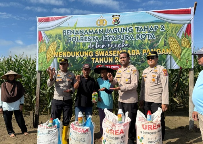 SENTANINEWS.NET – Jayapura Kota – Panen Lahan Ketahanan Pangannya, Kapolresta Jayapura Kota Kombes Pol Fredrickus W.A. Maclarimboen, S.I.K., M.H., CPHR didampingi Kabag SDM AKP I Nengah S. Gapar, S.Sos dan Kapolsek Muara Tami AKP Sem Hanasbey bersama lakukan panen jagung di lokasi yang berada di samping Mapolsek Muara Tami, Distrik Muara Tami, Kota Jayapura, Papua, Sabtu pagi, 12 Juli 2025. Kapolresta KBP Fredrickus mengatakan bahwa, … Lanjutkan membaca Kapolresta Jayapura Panen Jagung di Lokasi Ketahanan Pangan Binaannya