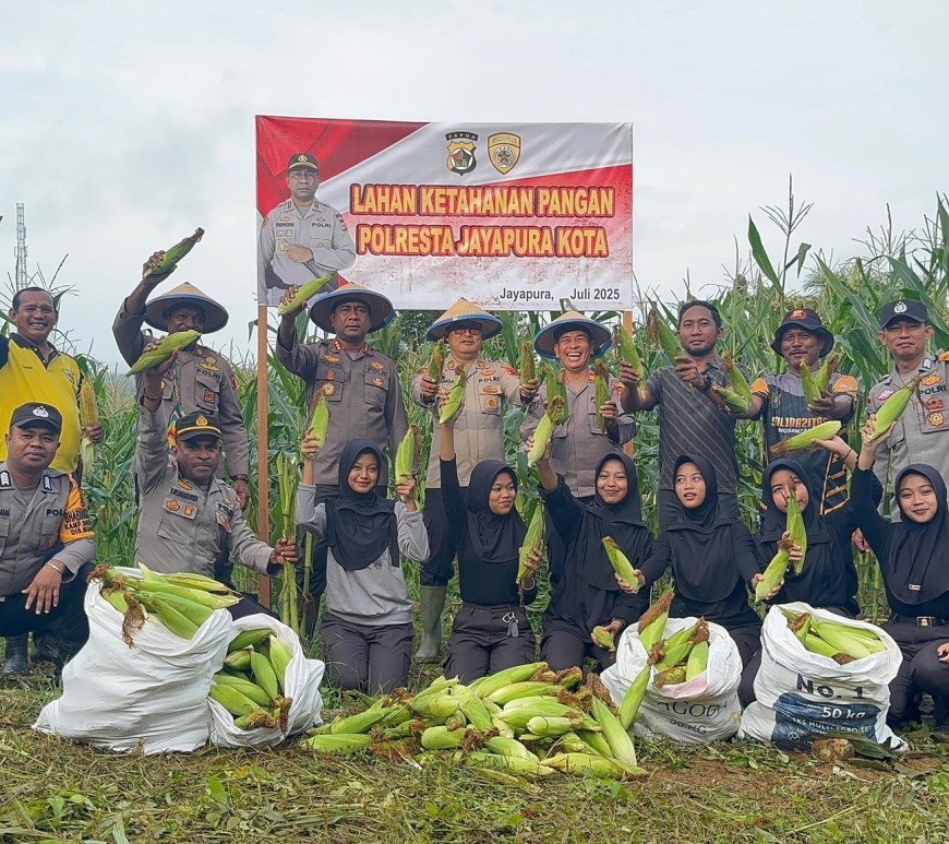 Kapolresta Jayapura Panen Jagung di Lokasi Ketahanan Pangan Binaannya