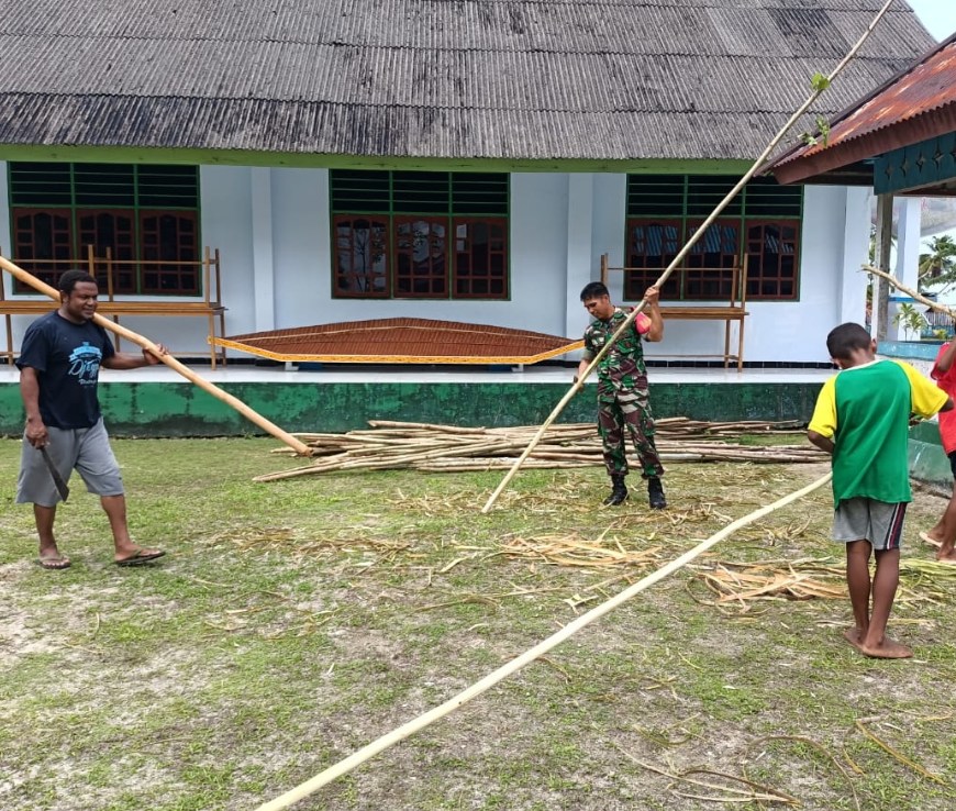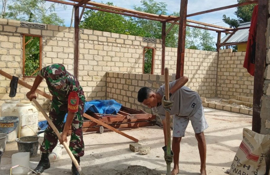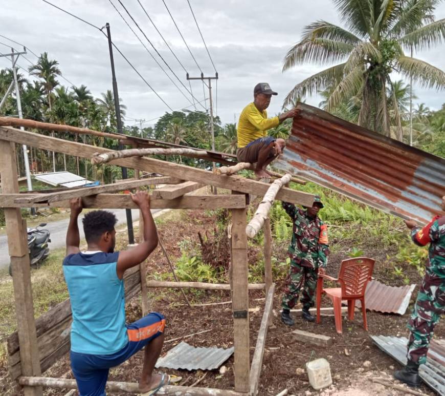 Ringankan Beban Warga. Babinsa Biak Timur Bantu Warga Bangun Rumah