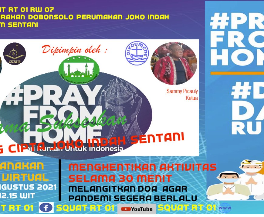 Sentani – Warga Perumahan Joko Indah yang berada di Kelurahan Dobonsolo, Distrik Sentani, Khususnya di RT 01 RW 07 Perumahan Joko Indah sesuai rencana akan gelar Pray From Home (Doa Dari Rumah) bersaama semua warga melalui virtual meeting, 1 Agustus 2021. Hal ini disampaikan Ketua RT 01, Ismail R. Noi, dalam sebuah keterangan yang disampaikan kepada warga, sekaligus mengajak warga Perumahan Joko Indah agar dapat … Lanjutkan membaca Warga Perumahan Joko Indah di Sentani gelar virtual doa dari rumah untuk Indonesia