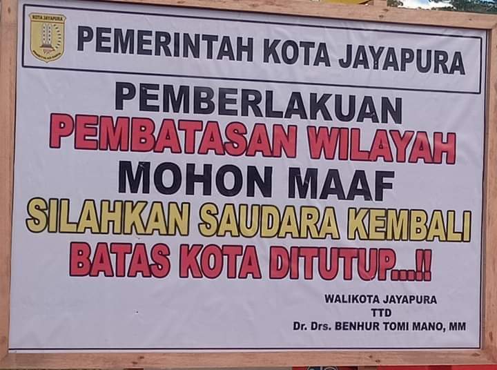 Sentani (Sentani News)- Warga Sentani Kabupaten Jayapura, mulai menutup pintu masuk pemukimannya gunakan portal karena khawatir wabah virus Corona masuk ke lingkungan mereka. Hasil pantauan media ini, hampir sebagian besar warga sentani menutup pemukimannya gunakan portal atas inisiatif warga padahal lingkungan tempat tinggal mereka tidak ada pasien positif atau daerah tertentu yang sedang dilakukan pengawasan ketat. Warga setempat yang hendak bepergian keluar rumah harus melewati … Lanjutkan membaca Takut Virus Corona Masuk, Warga Sentani Mulai Tutup Pemukiman