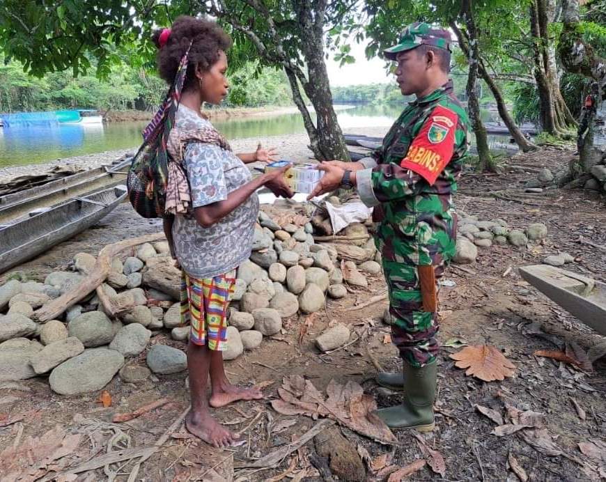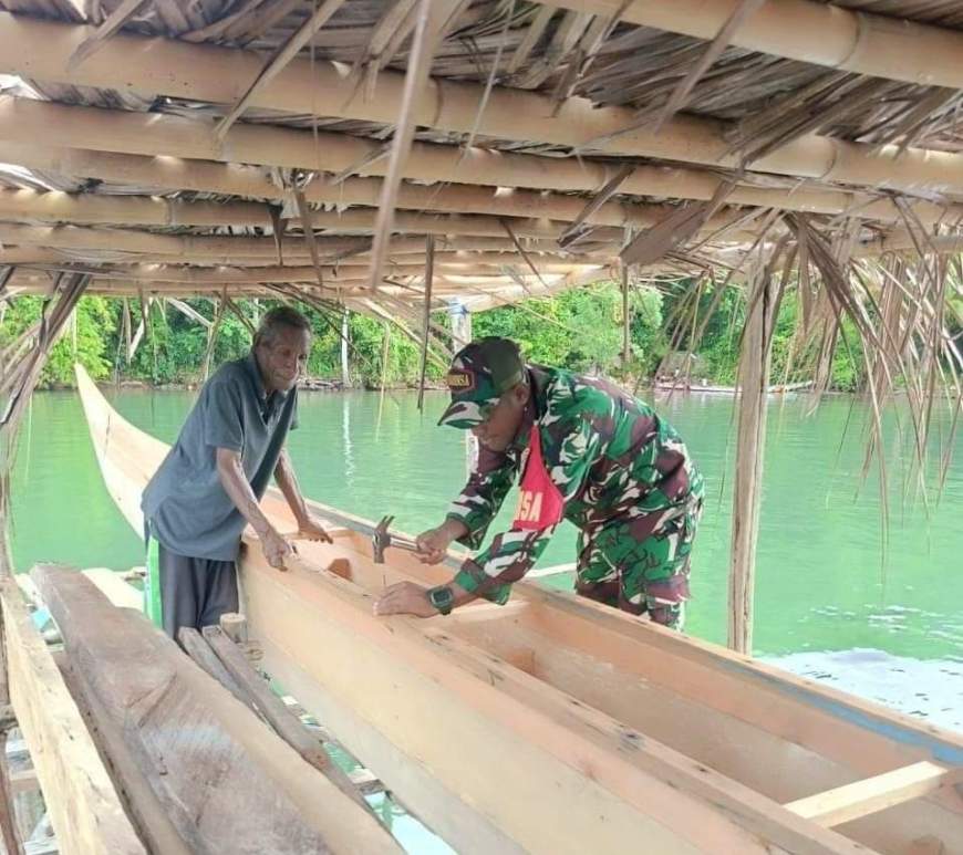 Lestarikan Budaya Dan Kearifan Lokal, Babinsa Posramil Warsa Bantu Warga Olah Sagu
