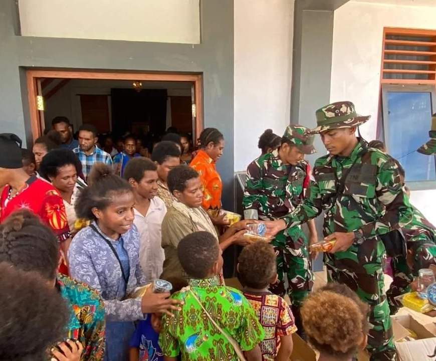 TNI Di Yahukimo Berbagi Kebaikan Dengan Jemaat Dekai