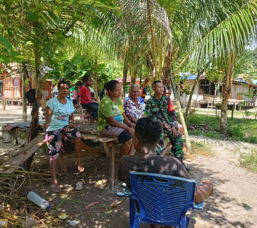 Babinsa Supiori Utara Komsos Dengan Warga Binaan di Kampung Sorendiweri