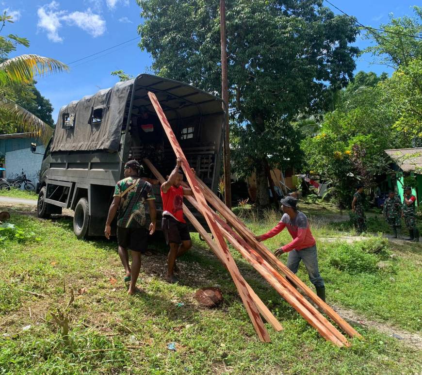 Dukung Kelancaran TMMD Ke-115, Kodim 1708/BN Pasok Material Kayu