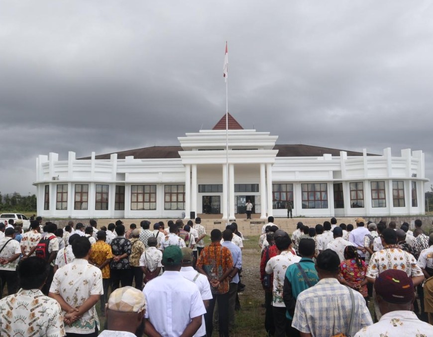 Kenyam – Bertempat di Halaman Kantor Bupati Nduga, Penjabat (Pj) Bupati Nduga Namia Gwijangge, S,Pd., M.Si., memimpin apel gabungan dalam rangka memberikan pengarahan perdana, penyampaian visi dan misi pembangunan di Kabupaten Nduga. Pada pengarahan perdana yang diikuti oleh aparat gabungan TNI-Polri dan seluruh ASN, Pj Bupati Nduga menyampaikan unsur terpenting dalam membangun suatu daerah adalah keamanan, selan itu kerja sama antar instansi harus ditingkatkan agar … Lanjutkan membaca Pimpin Apel Perdana, Pj Bupati Ajak Seluruh Instansi Jaga Keamanan di Nduga