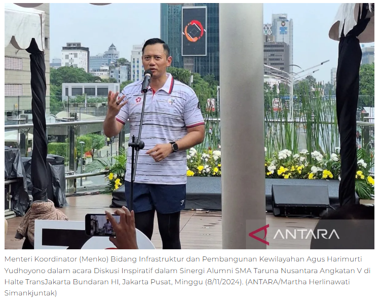 SENTANINEWS.ID – JAKARTA – Menteri Koordinator (Menko) Bidang Infrastruktur dan Pembangunan Kewilayahan Agus Harimurti Yudhoyono (AHY) mengatakan harga tiket pesawat menjelang liburan Natal 2024 dan Tahun Baru 2025 (Nataru) berhasil diturunkan guna mendukung mobilitas masyarakat yang tinggi pada periode tersebut. “Di hari-hari yang memang kita harapkan akan terjadi mobilitas yang tinggi, masyarakat kita menjelang liburan Natal dan Tahun Baru, kita berharap ada upaya untuk pengurangan … Lanjutkan membaca Menteri: Harga tiket pesawat berhasil diturunkan