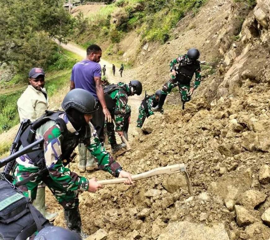 Gerak Cepat Prajurit Yonif 721/Mks Bantu Warga Atasi Tanah Longsor Di Lanny Jaya